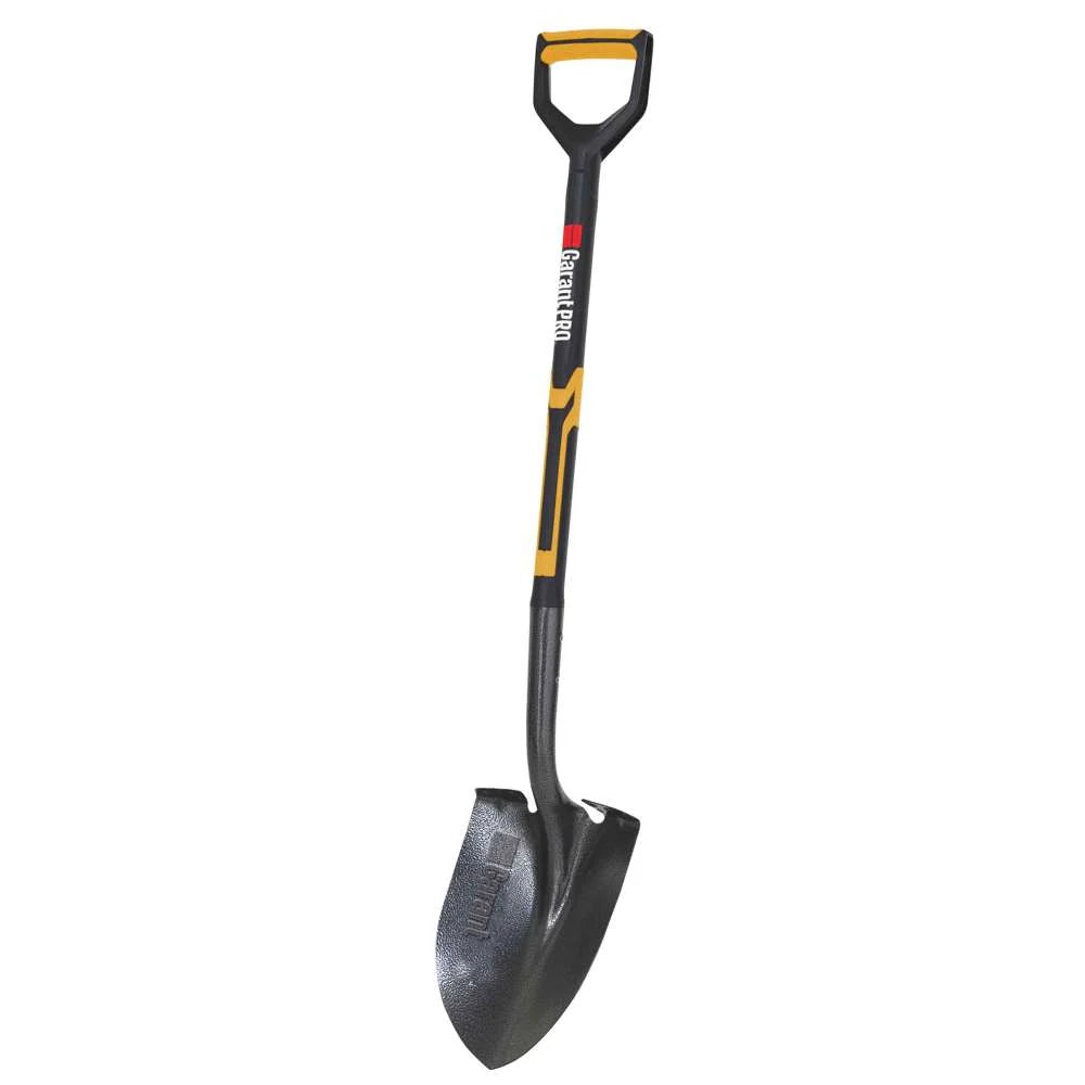 Dig holes, plant and uproot trees and bushes with the Garant Pro round shovel. Featuring a sturdy handle made of engineered materials with a fibreglass core, a tempered steel blade and an extra-wide foot step, this industrial-grade shovel is ideal for professionals looking for a robust, powerful and comfortable tool to carry out landscaping, construction, road work or any type of work requiring digging.